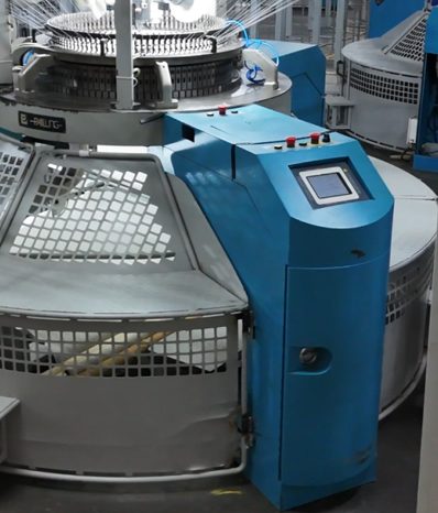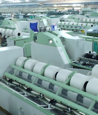 Knitting machines producing 30 tons of grey knitted fabric daily.