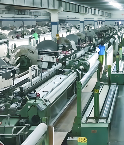 Weaving on wide & narrow width looms, producing 7.5 million meters per month.